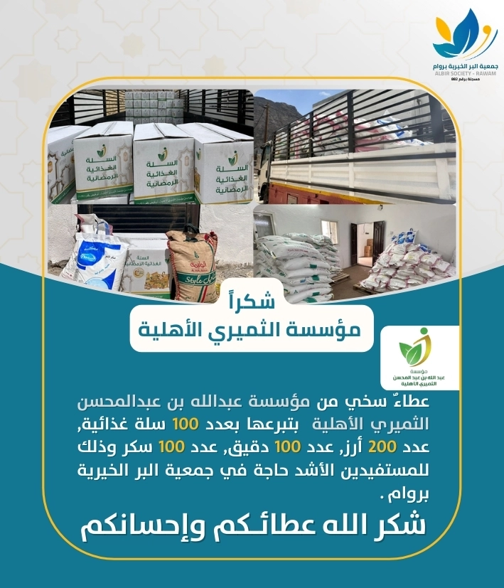 مشروع السلال الرمضانية لمؤسسة الثميري الخيرية